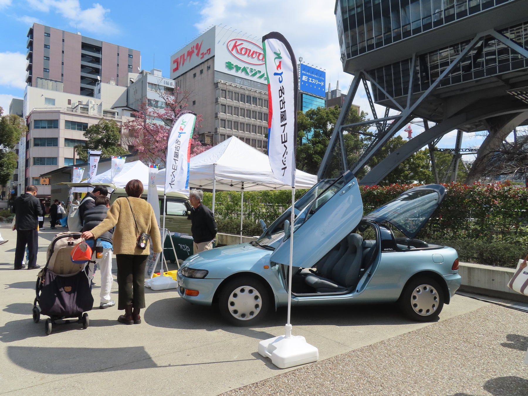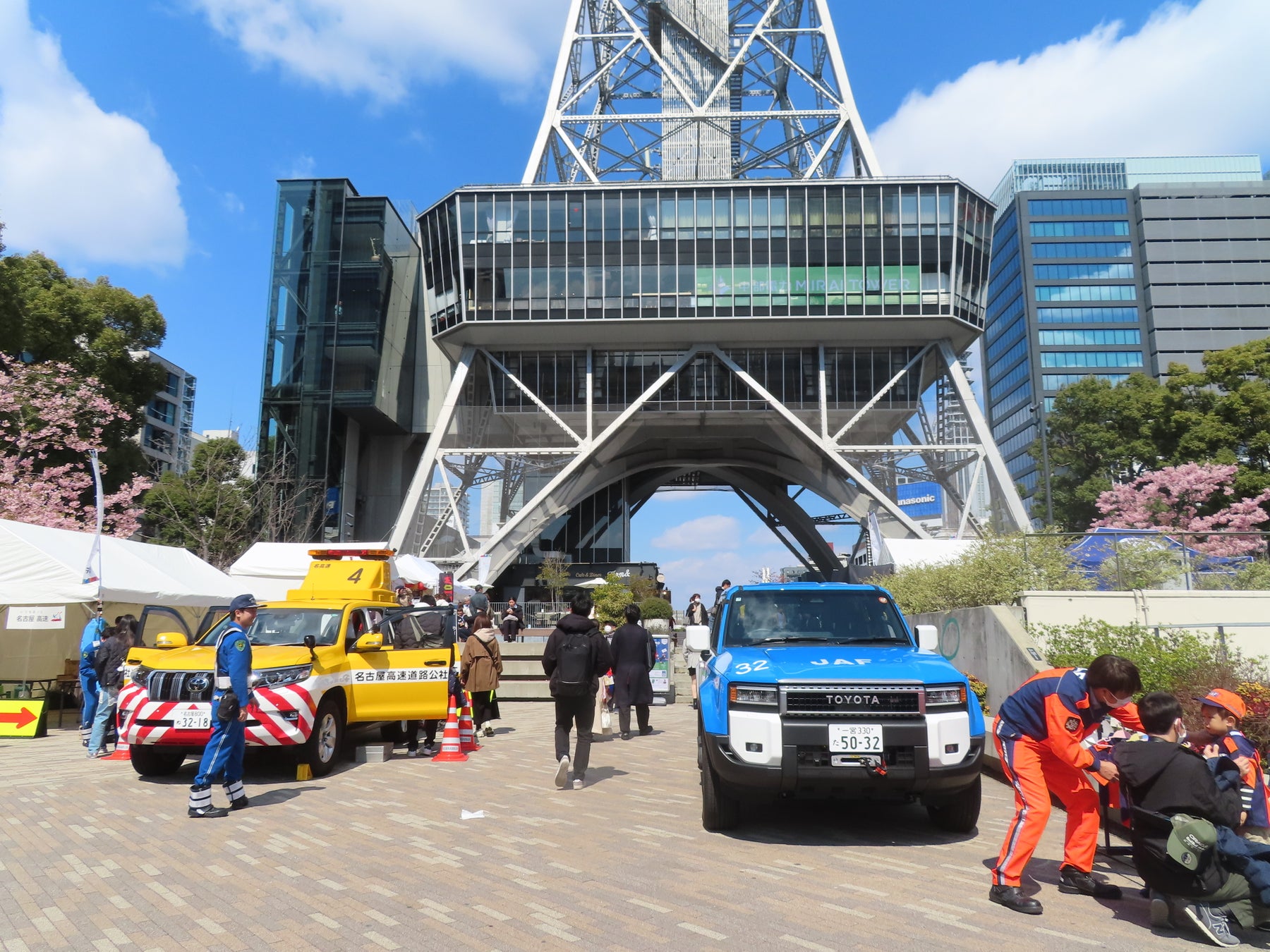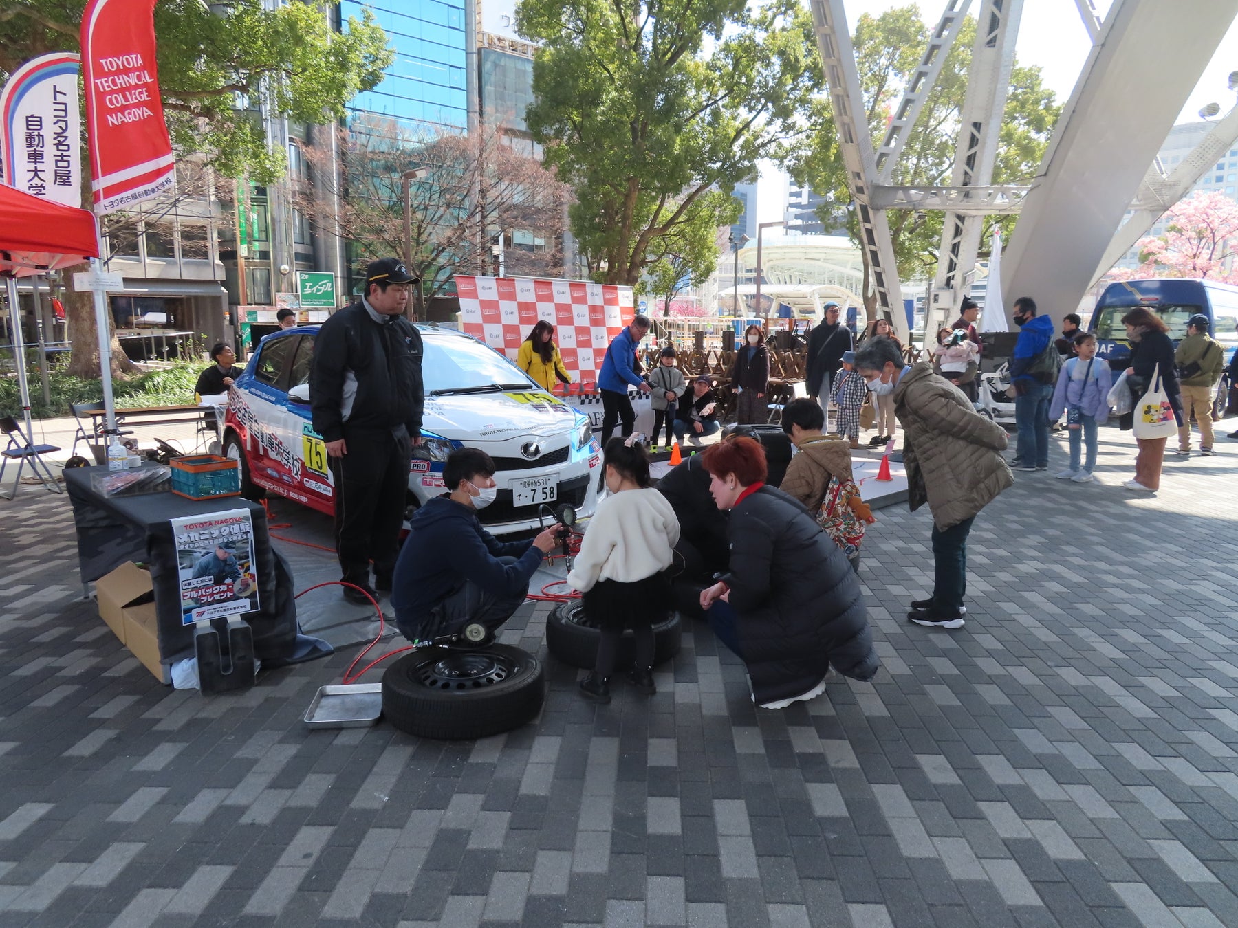 テレビ塔下のモータースポーツエリアでは、5月28日から愛知・岐阜で開催されるWRC日本ラウンド「フォーラムエイト・ラリージャパン」がプロモーションブースを展開します。トヨタ名古屋自動車大学校の協力のもと、タイヤの空気圧調整が体験できます。