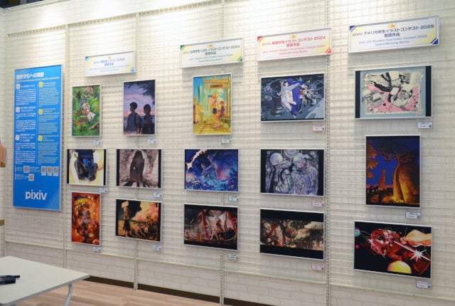 さらに、2024年と2025年にpixivで開催された、4つの学生向けイラストコンテストの受賞作品計15点を展示! 若いクリエイターたちの力強く個性あふれる表現を間近で見ることができます。