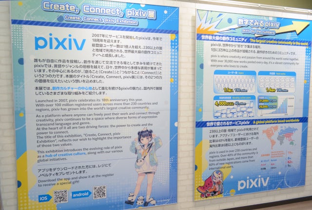 今年で18周年を迎える、イラスト、マンガ、小説作品の投稿プラットフォーム「pixiv」の展示イベント。会場では、「創作カルチャーの中心地」として進化を続けるpixivの魅力と、国内外で展開しているさまざまな取り組みを紹介しています。