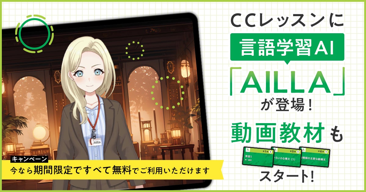 株式会社 学研ホールディングス(東京・品川/代表取締役社長:宮原博昭)のグループ会社、株式会社GAKKEN CC(東京・品川/代表取締役社長:谷口正一郎)が運営するオンライン中国語サービス「CC LESSON」(https://www.cclesson.com)は、2024年10月1日より学研史上初めての試みとして言語学習AI「AILLA」によるAI講師を導入しました。加えて独自の動画教材の提供を開始することでレッスン外での学習環境をさらに強化します。