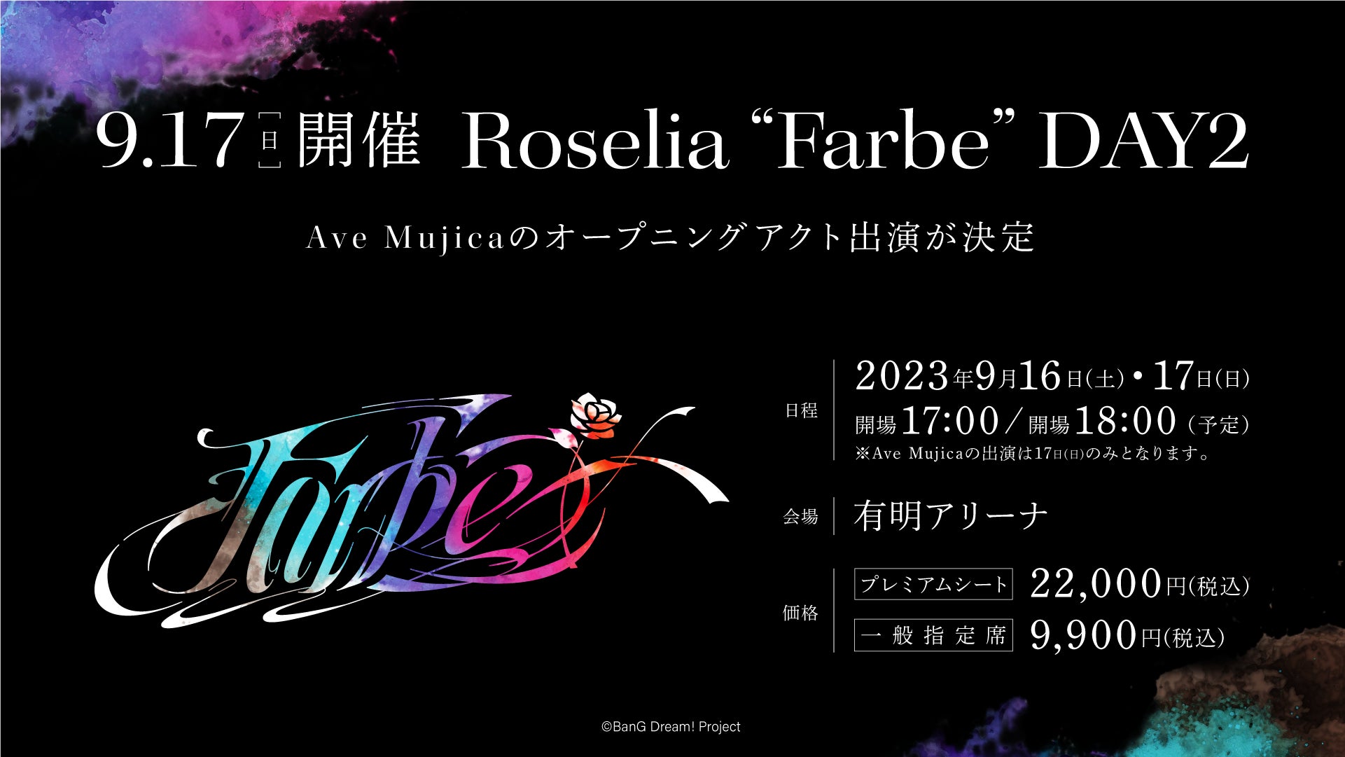 9月17日(日)に開催されるRoselia「Farbe」DAY2に、Ave Mujicaのオープニングアクト出演が決定しました。DAY1にはMyGO!!!!!のオープニングアクト出演が既に決定しています。