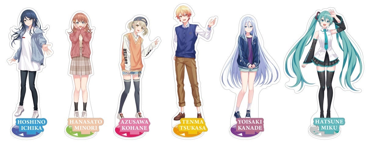本展ではなんと、『プロジェクトセカイ』の新商品を先行販売いたします! 先行販売する商品には、一歌、みのり、こはね、司、奏、ミクが登場。定番の「アクリルスタンド」はもちろん、「ビッグメタルステッカー」や「おまもり風アクリルキーホルダー」など盛りだくさんのラインナップです。