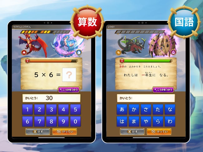 ドラゴンとのバトルを楽しみながら学習できる! App Storeでダウンロード数第1位※を獲得した、大人気の『ドラゴンドリルアプリ』がアップデート。待望の【小2国語】が加わりました。