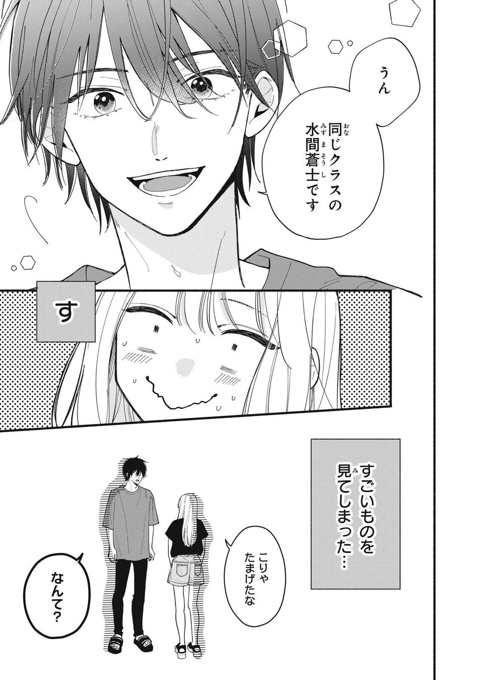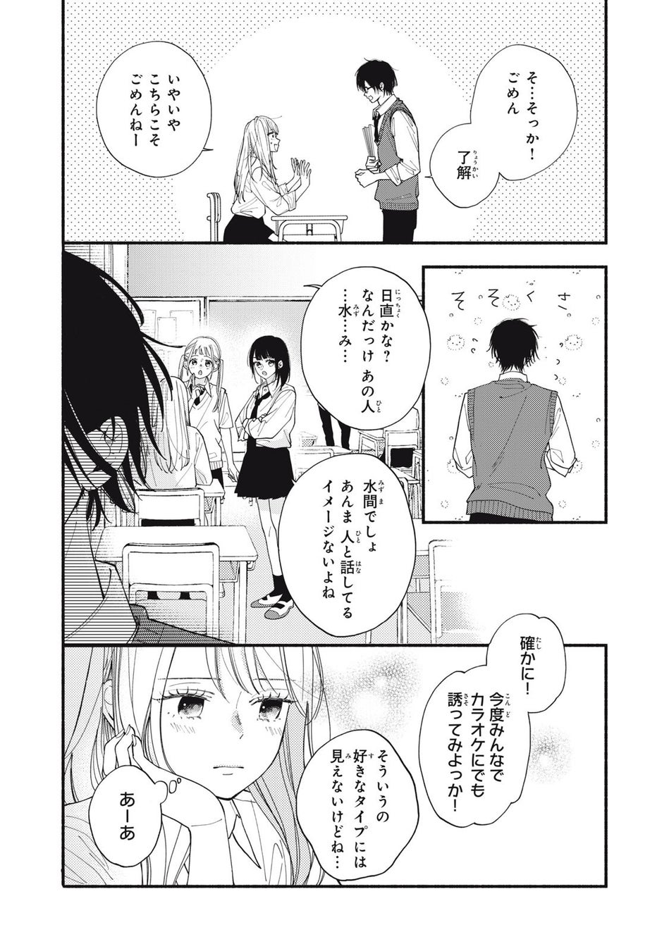 同じクラスのさえない男子・水間が、実は超絶イケメンなことを知ってしまう。