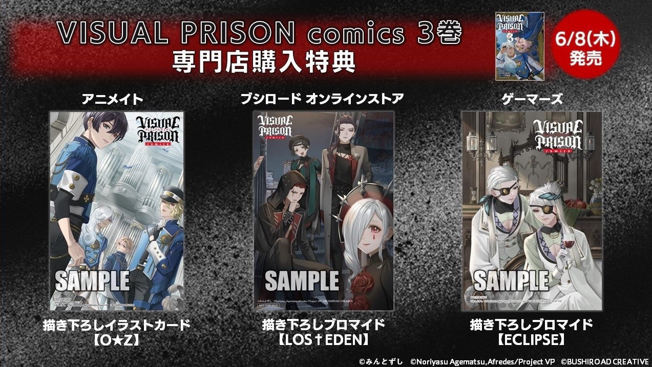 株式会社ブシロード(本社:東京都中野区、代表取締役社⻑:木谷高明)のグループ会社にあたる株式会社ブシロードクリエイティブ(本社:東京都中野区、代表取締役社長:成田耕祐)は、無料で読めるWEBマンガサイト「コミックブシロードWEB」にて連載されていた『VISUAL PRISON comics』の完結巻となる第3巻が、本日6月8日(木)に発売することをご案内致します。