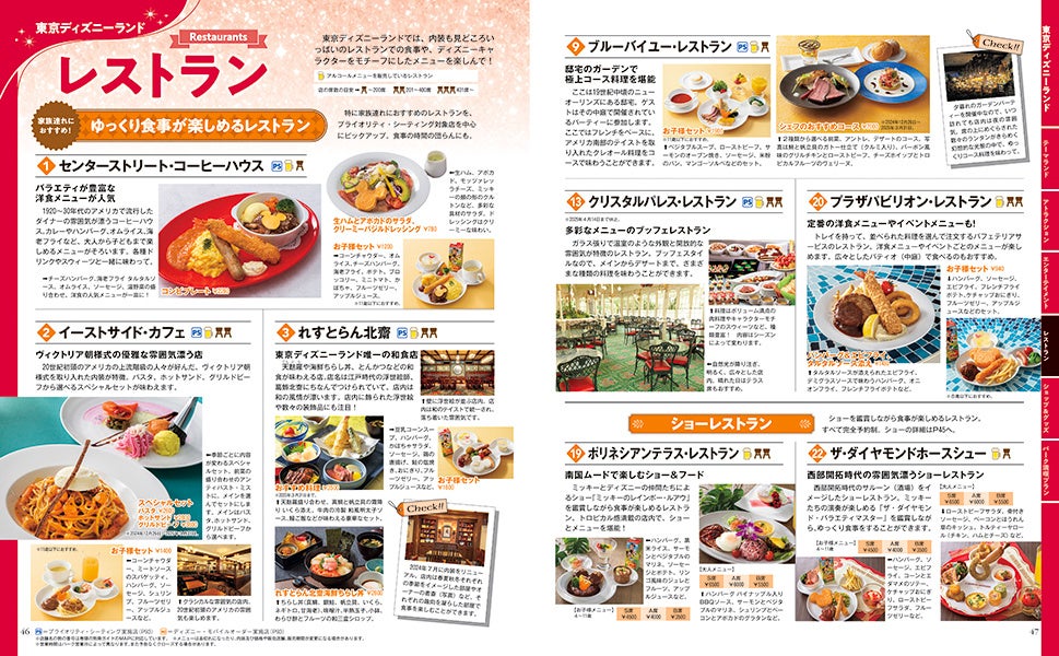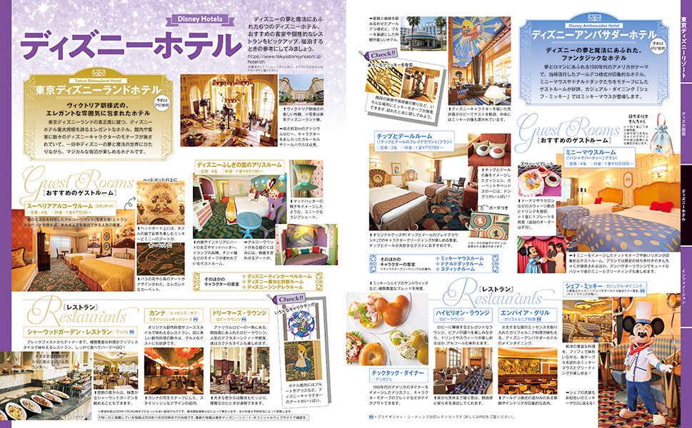・東京ディズニーランド、東京ディズニーシーごとにアトラクション、レストラン、ショップ、モデルコースプランを紹介。