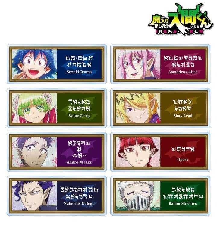 鈴木入間、アスモデウス・アリス、ウァラク・クララ、シャックス・リード、アンドロ・M・ジャズ、オペラ、ナベリウス・カルエゴ、バラム・シチロウのイラストを新たなタッチで魅力的に表現し、アクリルネームプレートに仕上げました。