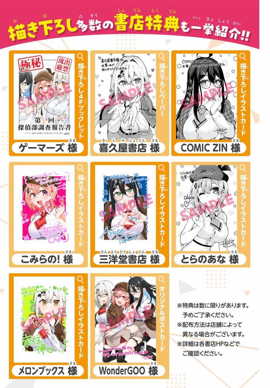 この期待の声が届いてか、第1巻としては異例(月マガ調べ)となる書店8チェーンから特典希望が寄せられ、特典企画が実施されています!