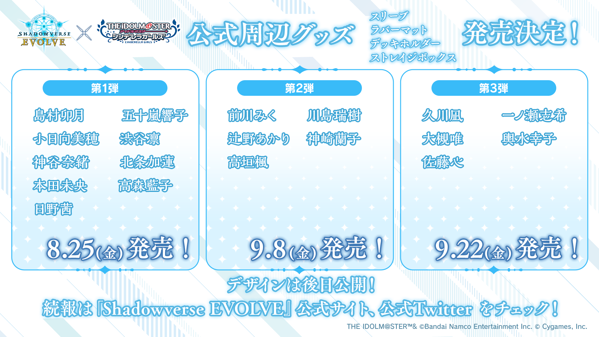 『Shadowverse EVOLVE』新弾発表!『アイドルマスター シンデレラガールズ』とのコラボ商品を8月25日(金)に発売決定!