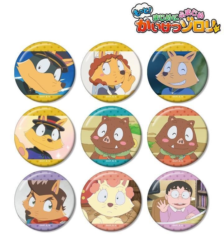 ゾロリ、イシシ、ノシシ、ビート、ゾロリママ、原先生の印象的なシーンを缶バッジに仕上げました。