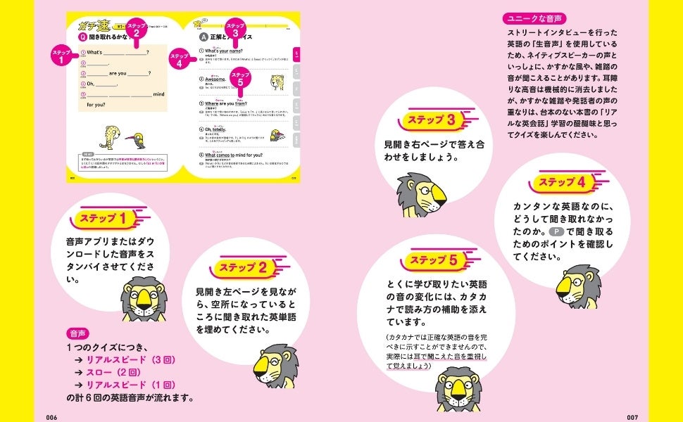 「遊ぶように英語を学ぶ」というモットーのもと、本書のためにニューヨークとロサンゼルスで街角インタビューを実施し、その音源からリスニング学習に最も効果をもたらすクイズ500問を作成しました。