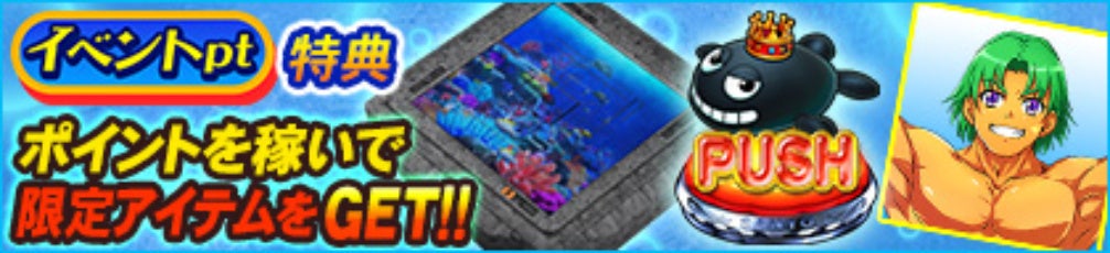 進化型SPキャラ(SSR)「サム(2D)2」のほか、『海物語』をイメージしたSPキャラ、アガリ演出、卓背景、EX背景などがイベントpt特典として獲得できます。
