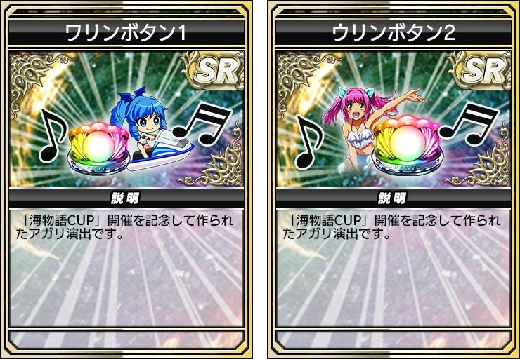 進化型SPキャラ(UR)「マリンちゃん4」や、進化型SPキャラ(SSR)「ウリン(2D)2」「ワリン(2D)2」といった『海物語』に登場するキャラクターをはじめ、『海物語』をイメージしたアガリ演出、卓背景、EX枠、EX背景などコラボアイテム全60種が期間限定で登場します。