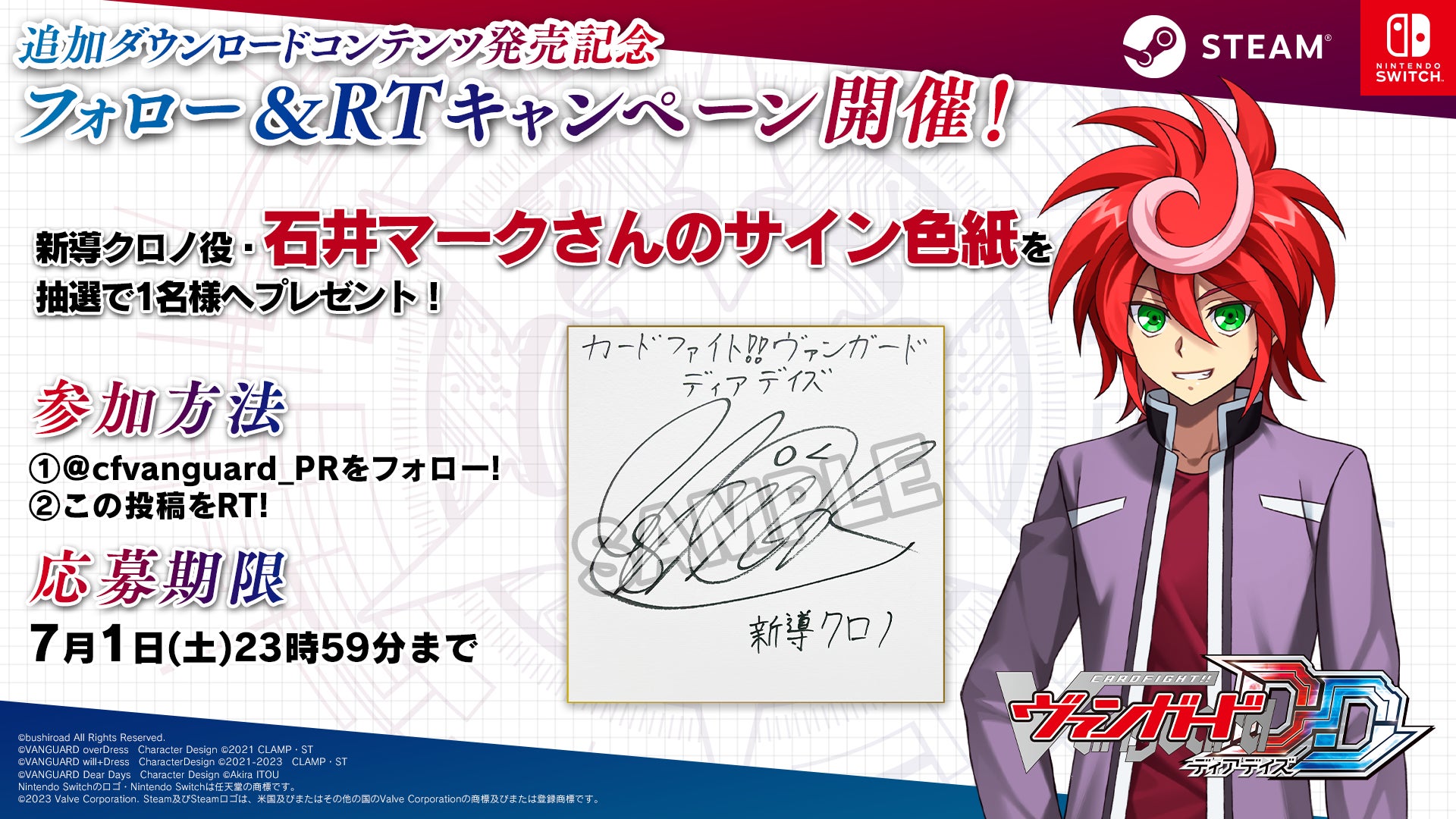 ①カードファイト!! ヴァンガード公式Twitter(@cfvanguard_PR)をフォロー