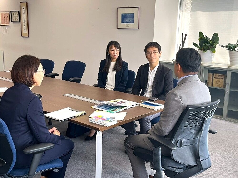来庁した荒木さんを笑顔で出迎えた柳橋県教育長は、「大変貴重な図鑑と単行本を県内のすべての学校に寄贈していただき感謝しています。最近はICTの授業でタブレットを使うこともありますが、図鑑を子どもたちが一緒に見ることで、また違った視点での会話が弾むのではないかと思います」と、子どもたちの学習に役立つことを期待していました。また教育現場での気候に関する授業のことや、防災についての話など、終始和やかな雰囲気で意見を交わしました。