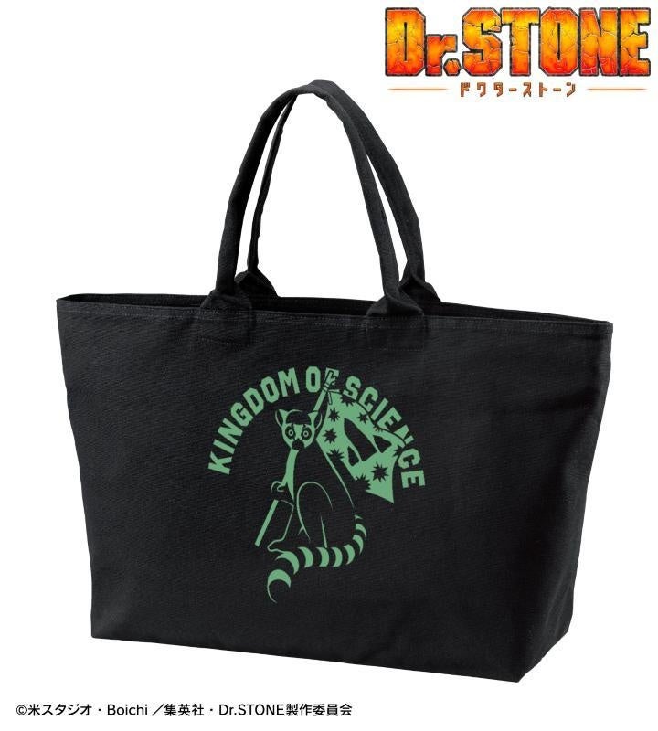 石神千空をイメージしたワオキツネザルのイラスト、科学王国の旗、KINGDOM OF SCIENCEの文字をBIGなジップトートバッグに仕上げました。