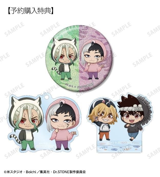 特典:石神千空&あさぎりゲン ちびキャラ 動物パーカーver. ホログラム缶バッジ AMNIBUS&ARMA BIANCA&アニメイト限定特典