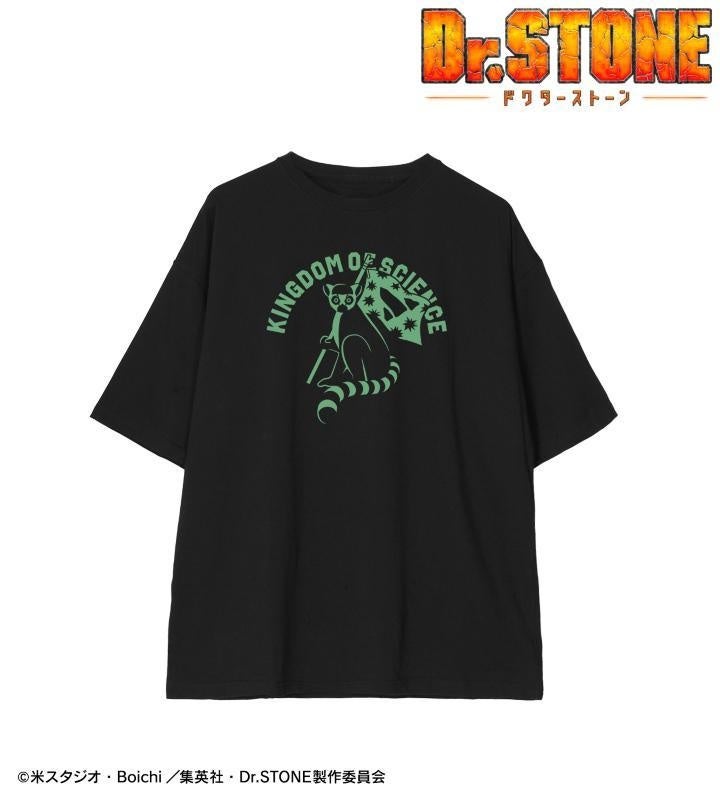 石神千空をイメージしたワオキツネザルのイラスト、科学王国の旗、KINGDOM OF SCIENCEの文字をBIGなシルエットTシャツに仕上げました。