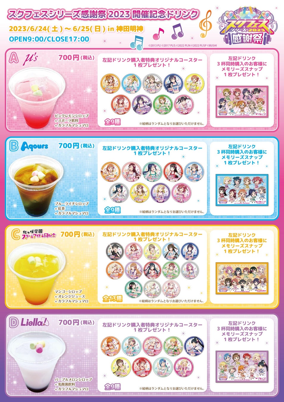 スクフェスシリーズ感謝祭2023開催記念ドリンクを感謝祭ステージ当日の2日間限定で発売♪