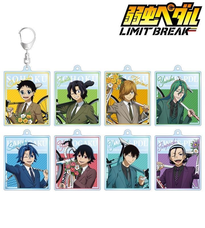 小野田 坂道、手嶋 純太、青八木 一、巻島 裕介、真波 山岳、新開 悠人、荒北 靖友、東堂 尽八の描き下ろしイラストをアクリルキーホルダーに仕上げました。