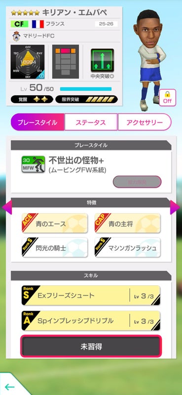 今回の「フランク・リベリー」が限界突破で獲得できる新スキル「スカーフェイスジェネラル+」は、初のSSランクスキルです。SSランクスキルは、自身が所持しているSランク以下のスキルと同時に発動条件を満たした場合、それらのスキルより優先的に発動します。さらに、2つ目のスキルがスキル継承枠となっている、フリースキルバージョンの「キリアン・エムバペ」も登場します。