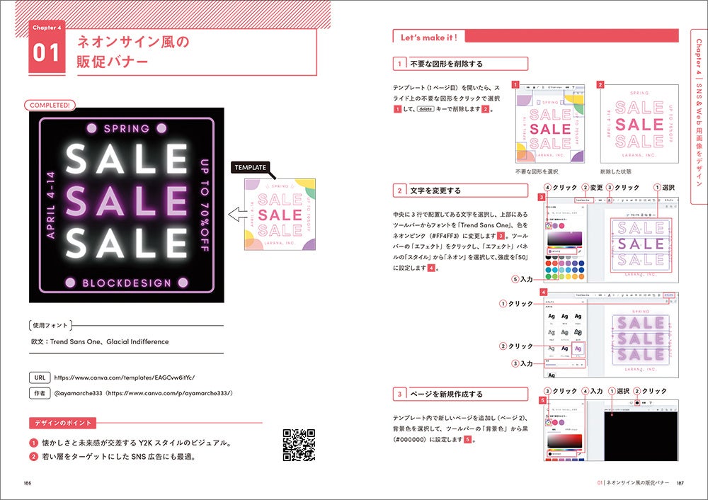 Canvaと本書があれば、デザインの初心者の方でも、こうした遊び心や自分らしさのあるデザインが手軽に、楽しくつくれます!