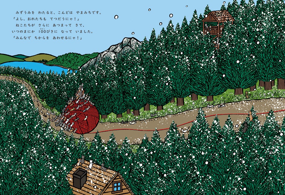 ●「あかい けいとと 100ぴきの ねこ」(作・絵/オームラトモコ)