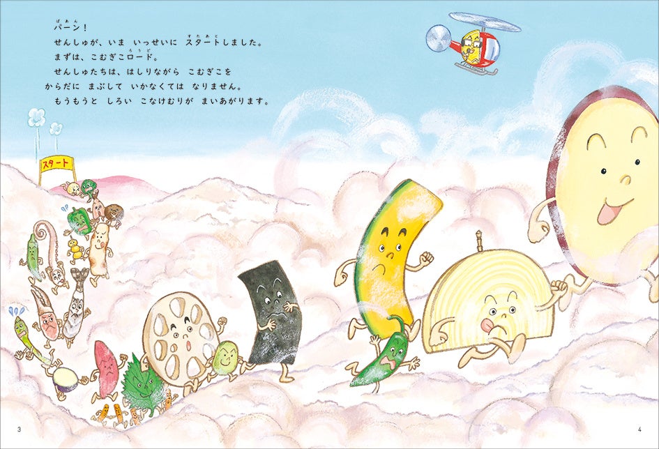 いろいろな素材が競走しながら天ぷらになるまでをコミカルに描いたお話は、子どもたちの心をつかみ、幼稚園の演劇発表会の題目にもなりました。