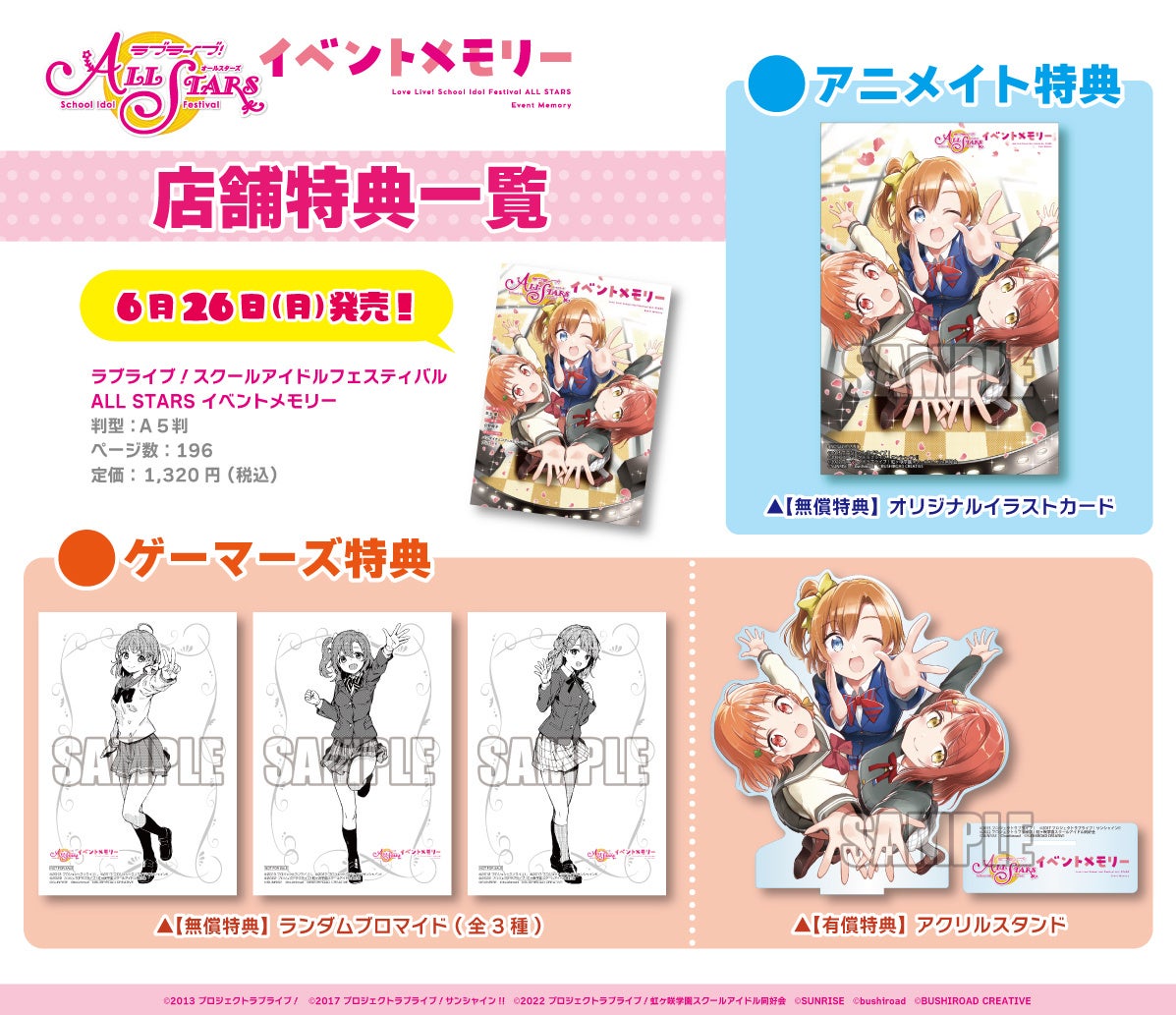 ©2013 プロジェクトラブライブ! ©2017 プロジェクトラブライブ!サンシャイン!! ©2022 プロジェクトラブライブ!虹ヶ咲学園スクールアイドル同好会 ©SUNRISE ©bushiroad ©BUSHIROAD CREATIVE