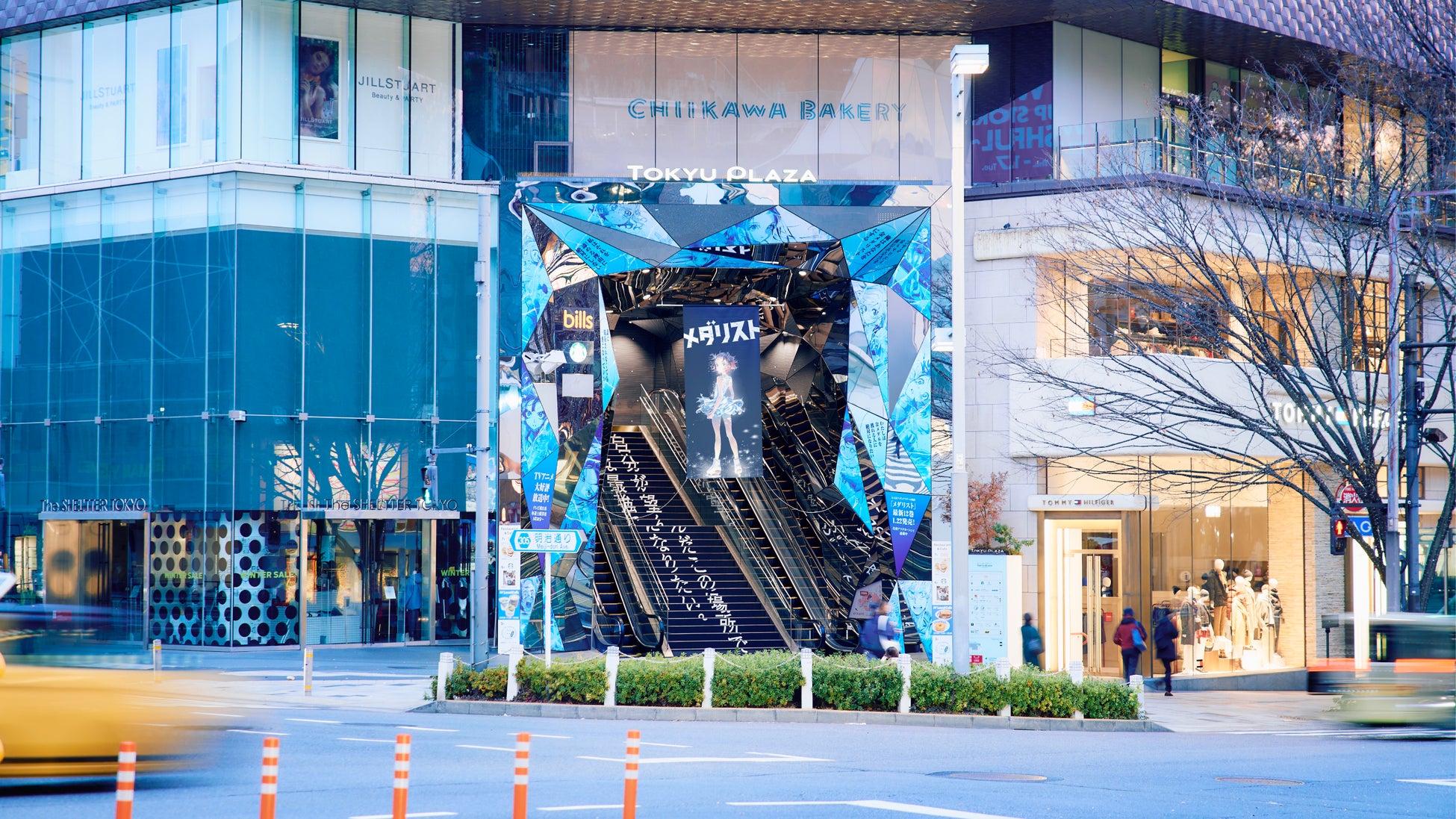 「月刊アフタヌーン」にて好評連載中の漫画『メダリスト』(作者:つるまいかだ)のTVアニメが、1月4日(土)より放送開始!これを記念して、東急プラザ表参道オモカドをジャックし「氷上の表彰台広告」を掲出しました。階段を表彰台に見立てて、最上段を金色にすることで金メダルを表現。全長4mの巨大ポスターと34段の階段がひとつに重なることで、主人公いのりが表彰台の一番上へと駆け上がる姿に見える、大迫力のビジュアルとなっています!ぜひ現地で、ぴったり重なるアングルを探してみてください!