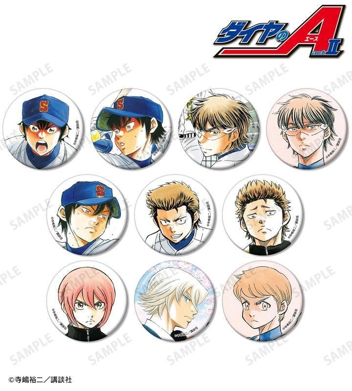 沢村栄純、御幸一也、降谷暁、倉持洋一、小湊春市、奥村光舟、由井薫、成宮鳴、多田野樹、轟雷市、真田俊平の原作コマイラストを缶バッジに仕上げました。