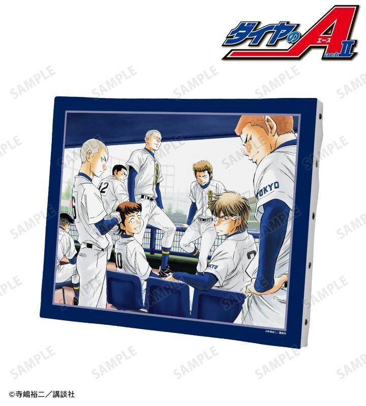 沢村栄純、御幸一也、降谷暁、倉持洋一、小湊春市、奥村光舟の原作コマイラスト、第35話扉絵イラスト、第65話扉絵イラスト、3巻中表紙、7巻中表紙をBIGなアクリルスタンドに仕上げました。