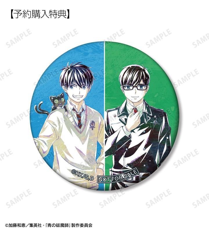 奥村 燐&クロ、奥村 雪男、杜山 しえみ&ニーちゃん、勝呂 竜士、志摩 廉造、三輪 子猫丸、神木 出雲、宝 ねむ、霧隠 シュラ、メフィスト・フェレスのイラストを新たなタッチで魅力的に表現し、マットな手触りの缶バッジに仕上げました。