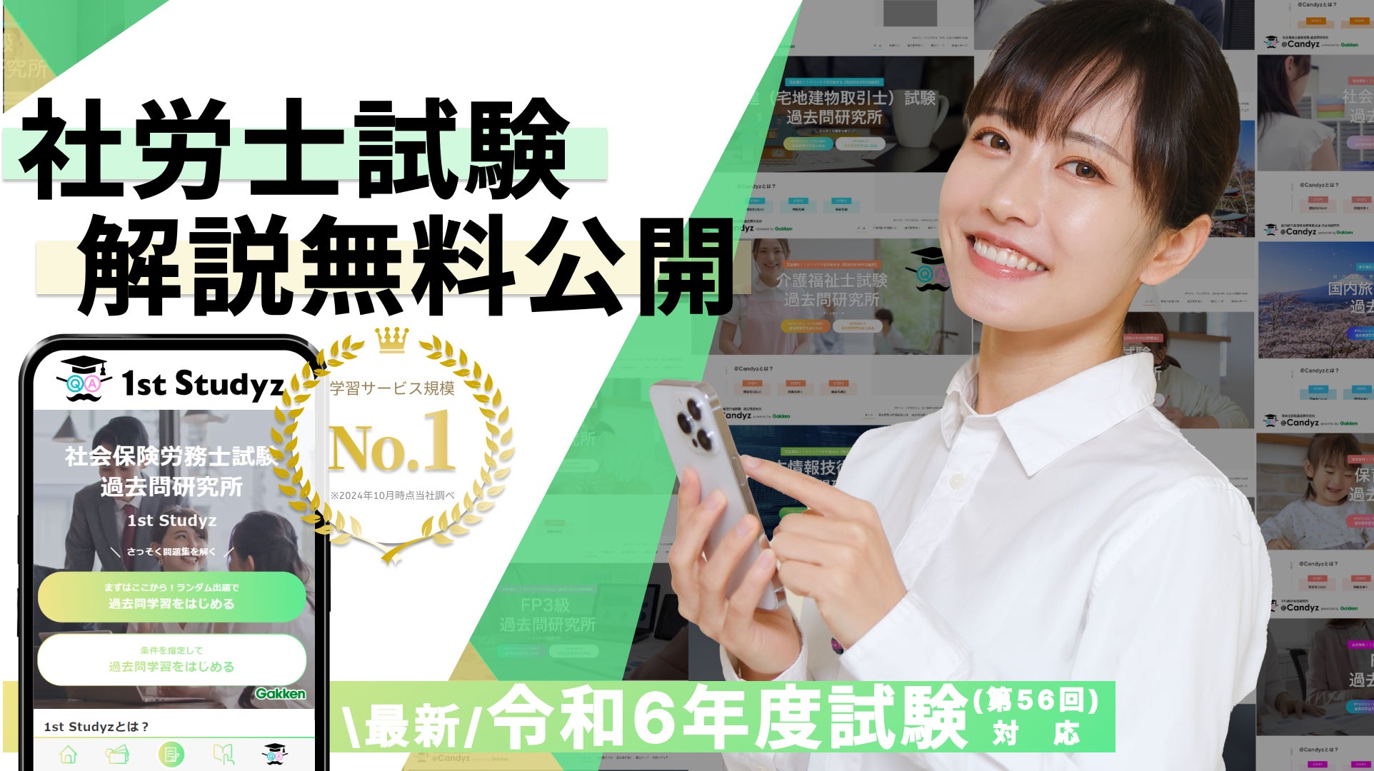 株式会社 学研ホールディングス(東京・品川/代表取締役社長:宮原博昭)のグループ会社、株式会社 Gakken(東京・品川/代表取締役社長:南條達也)が運営する「社会保険労務士(社労士)試験 1st Studyz」は2024年10月18日(金)に、「第56回(令和6年度) 社会保険労務士試験」の問題と解説を無料公開いたしました。