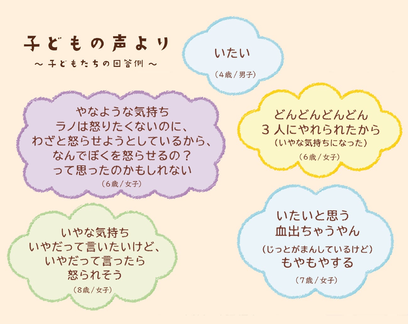 お子さまの答えは、「わからない」や、無回答も含めて、すべて正解です。ひとりひとりが違って大丈夫。どんな答えも花丸です。一緒に読む大人の感想を聞かせてもいいですね。お子さまの感受性や言葉を育むきっかけになります。