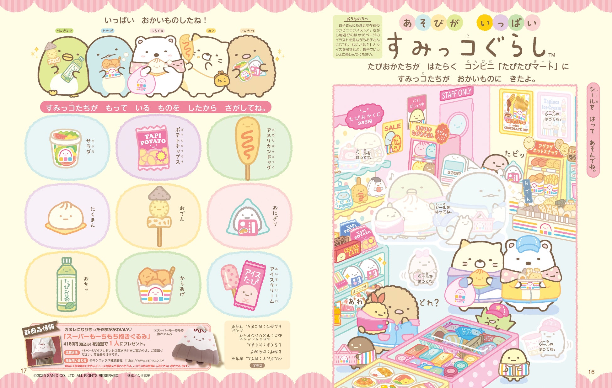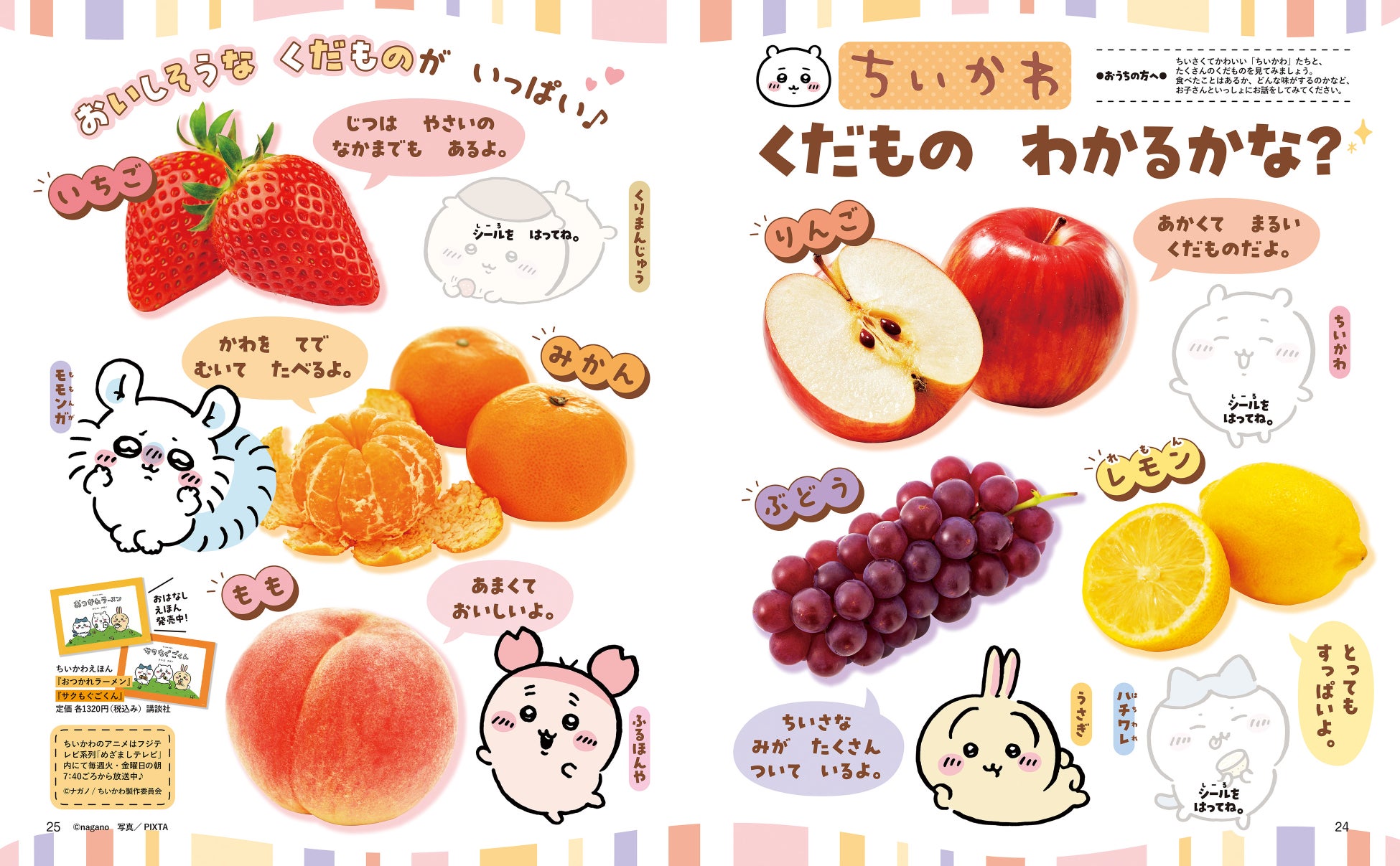 本誌では、たべものにまつわるシール遊びや知育ページなどが盛りだくさん! すみっコたちとおかいものしたり、ちいかわの「くだもの わかるかな?」など、かわいいキャラクターと一緒に遊びながら学べて内容も充実です。