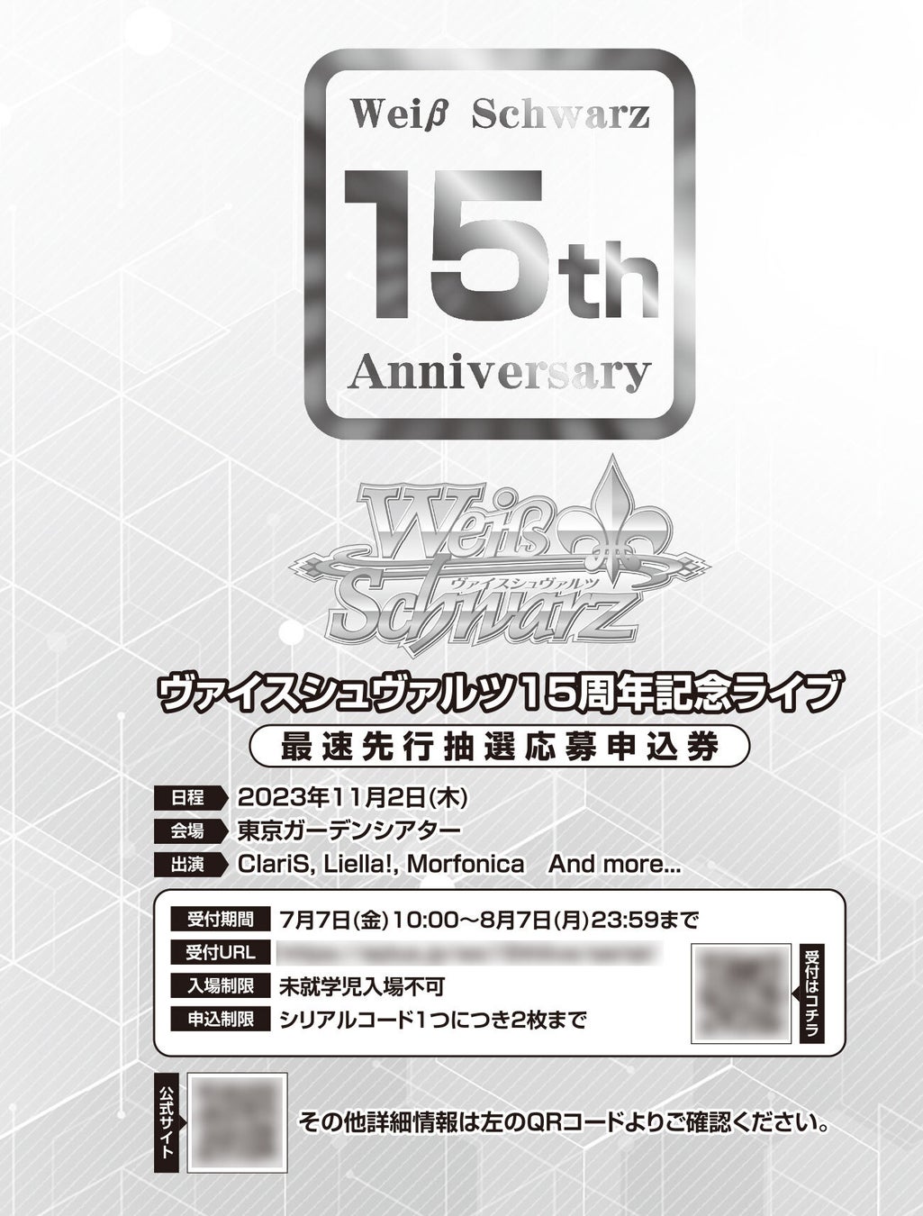ヴァイスシュヴァルツ15周年記念ライブ最速先行抽選応募申込シリアル