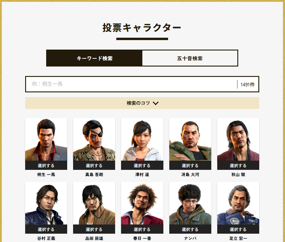『龍が如く』キャラクター総選挙 投票サイト