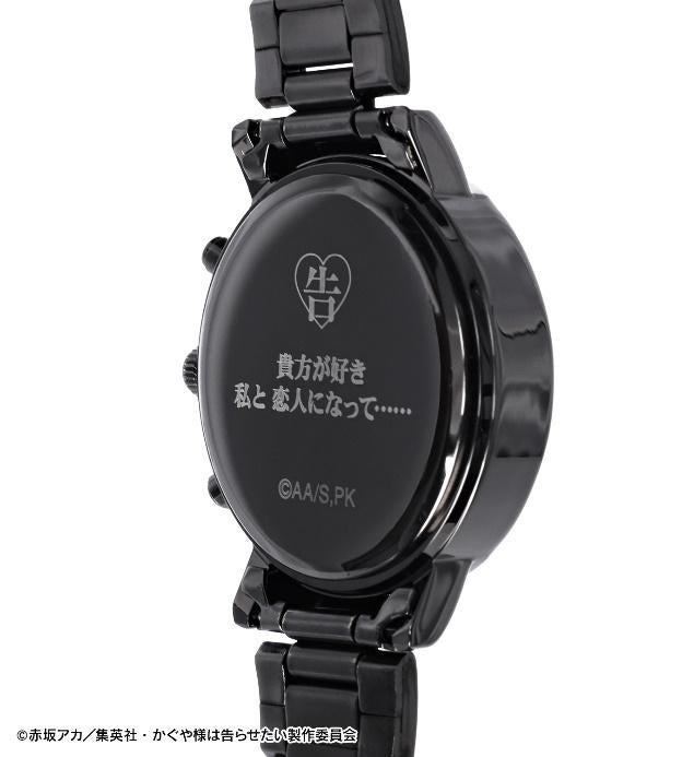 メタルバンドを採用し、ブラックとキャラカラーのグラデーションで四宮かぐやをイメージした腕時計です。