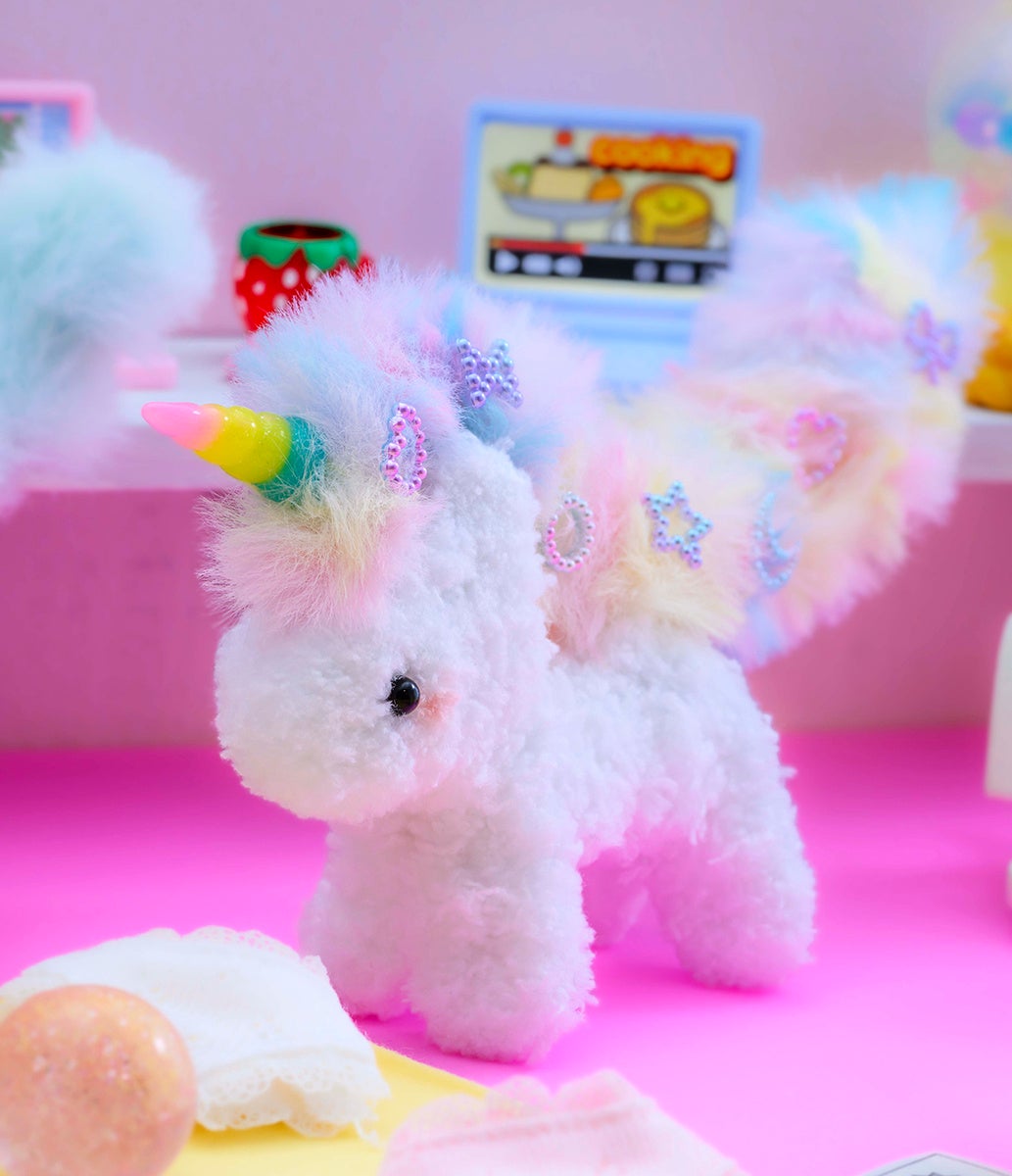 必要なものは全部入り! キットひとつで 「うさぎ」「ユニコーン」「ねこ」「あひる」の4つのもふかわドールが簡単に作れます♪ 付属のミニチュアブラシでかわいくおめかししたら、お気に入りのドールと一緒にお出かけしたくなること間違いなし!