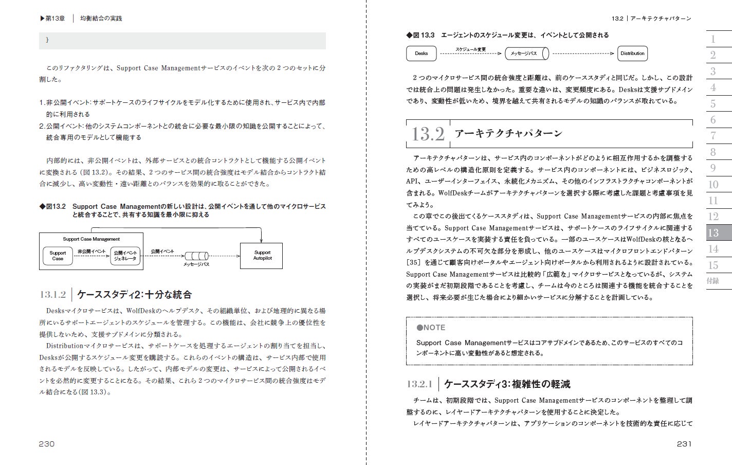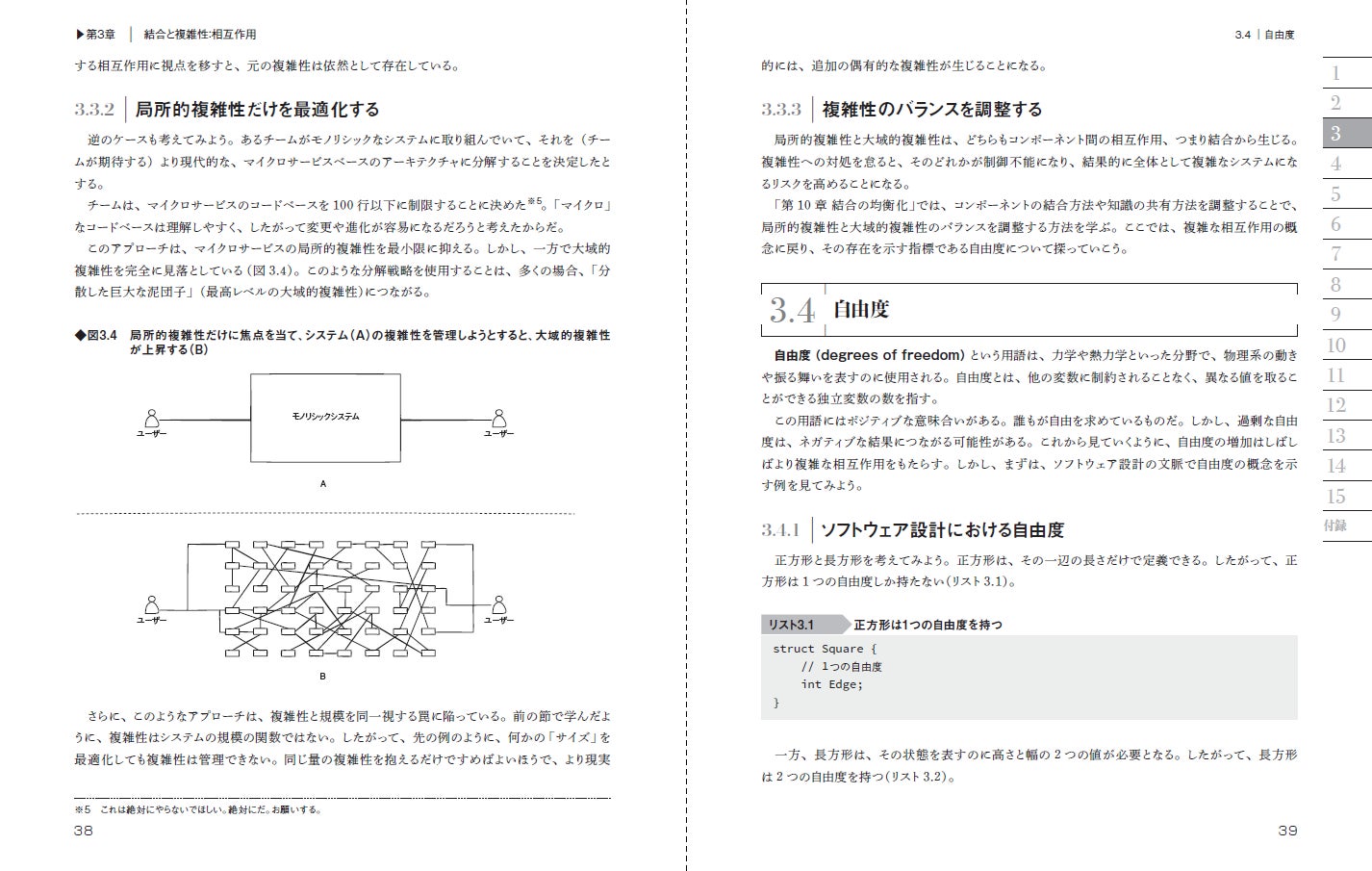さらに、構造化設計やオブジェクト指向設計に用いられてきた「結合」に関するモデルや評価手法を包括的に解説。複雑性を管理してモジュール性を高める設計ツールとして、「結合」を使用する新たなアプローチを提案します。これにより、柔軟性の高い進化するシステム構造を作り出すための具体的な原則が得られます。