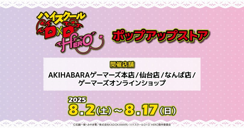 株式会社カードラボ ゲーマーズ(本社:東京都豊島区、https://www.gamers.co.jp/ 以下ゲーマーズ)は、2025年8月2日(土)より「ハイスクールD×D HERO」ポップアップストアを開催することをお知らせいたします。