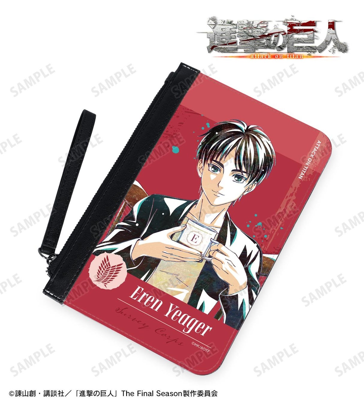 エレン、ジャン、エルヴィン、リヴァイの描き下ろしイラストを新たなタッチで魅力的に表現し、PUレザーフラットポーチに仕上げました。