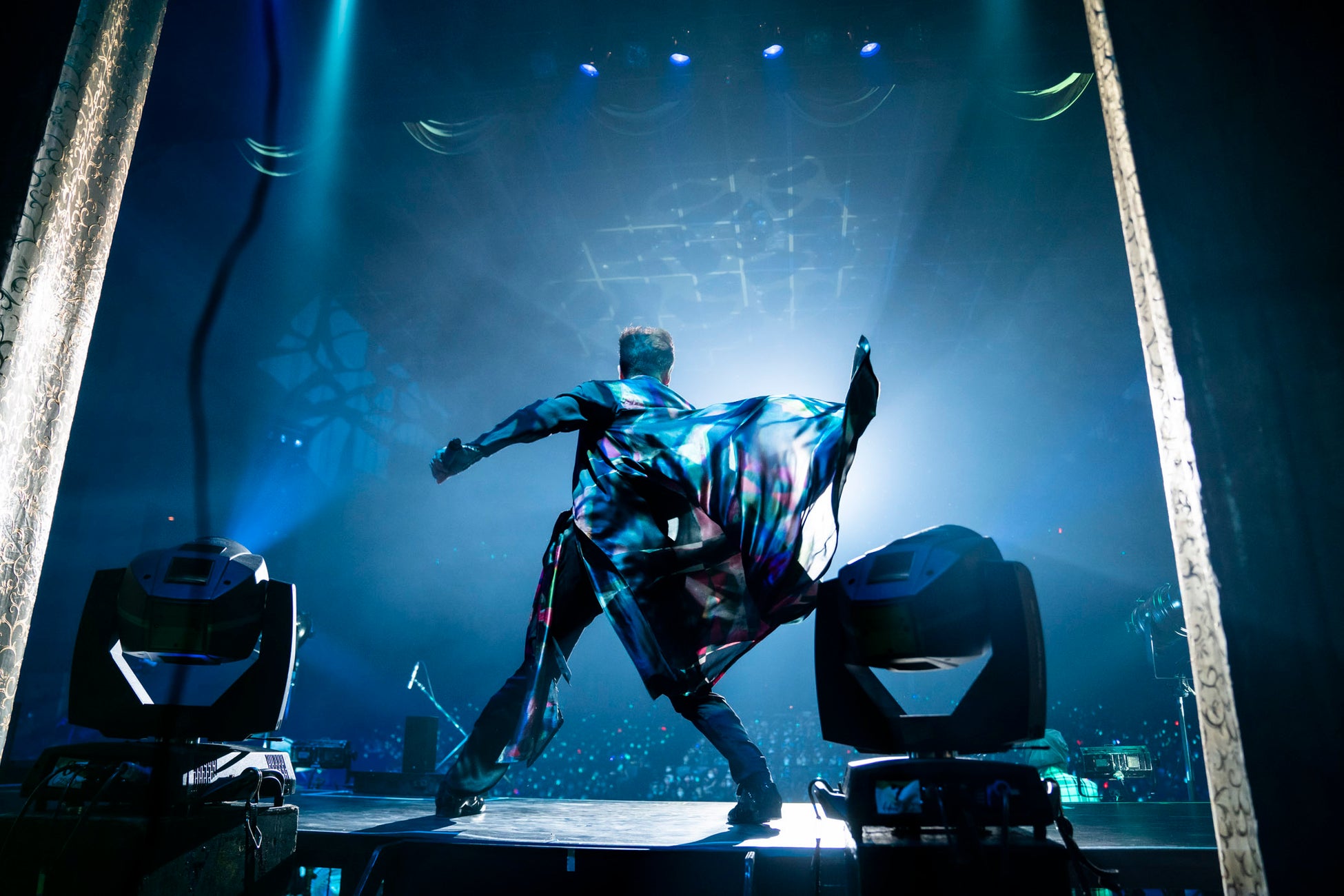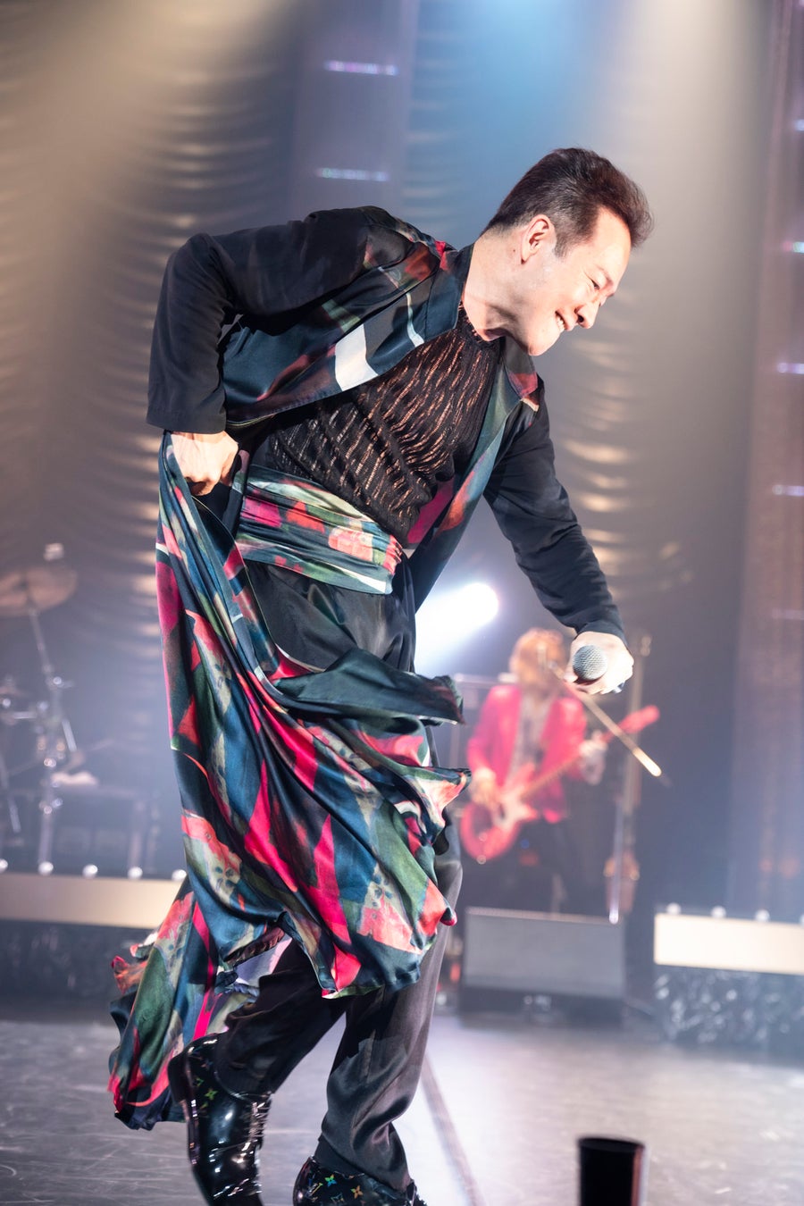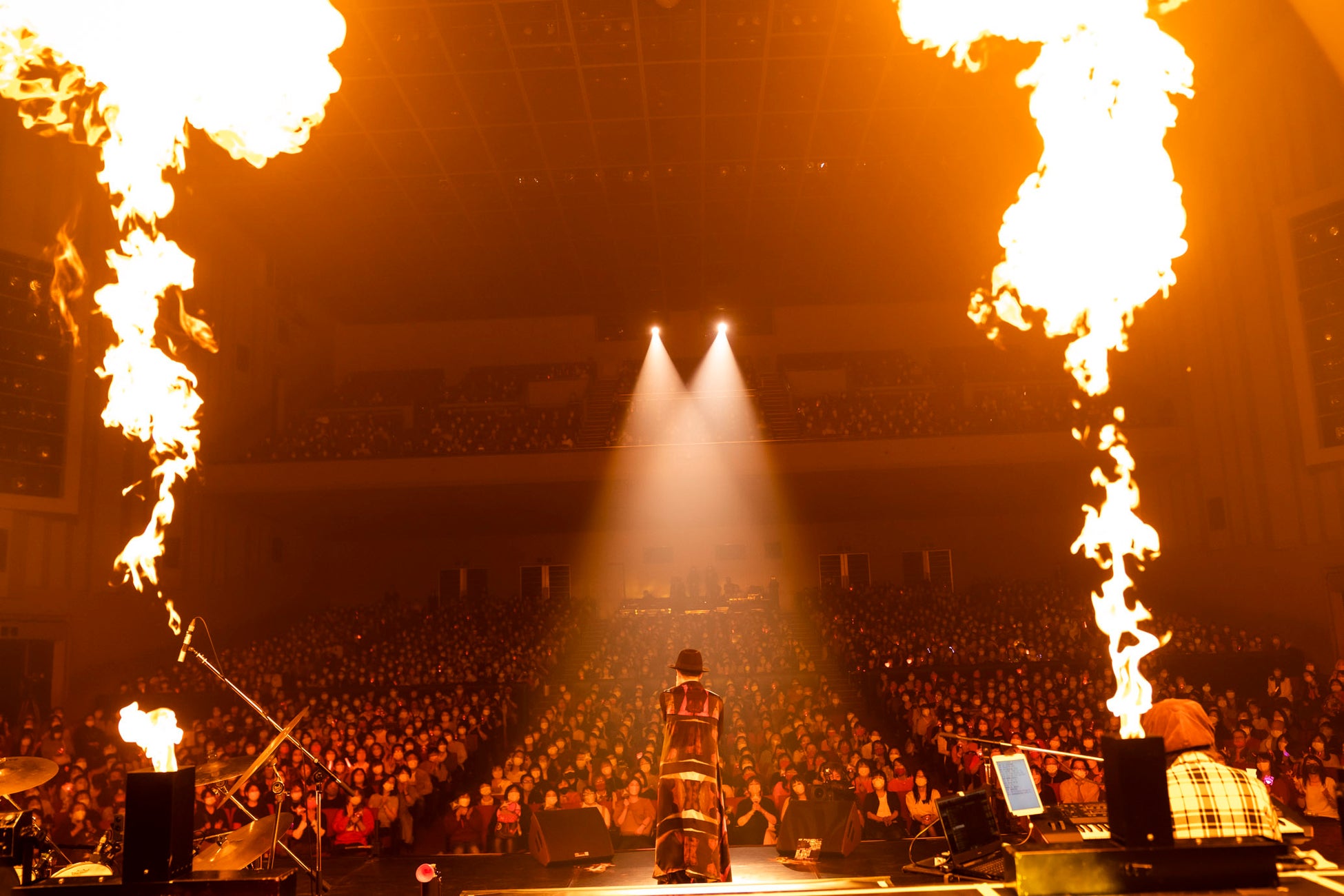 ダンサーを含めたメンバー紹介では、人柄の伝わるエピソードを田原が言い添えていたのが印象的。高いプロ意識を共有するメンバーたちと、濃密なコミュニケーションを重ねながらステージをつくりあげていく姿勢が垣間見えた。細かいステップを踏みながら華麗に舞い踊った「ごめんよ涙」では、<胸の夕陽が赤いから>という歌詞に合わせて照明が一瞬深紅に。「ジャングルJungle」では、エクトロニックなダンスビートで空気をガラリと変えた。「顔に書いた恋愛小説(ロマンス)」では、バンドメンバーと随所で絡みながらステージを縦横無尽に動き回り、ファンを大いに沸かせる。その後の「愛しすぎて」は、センターに立ち歌唱をしっかりと届けた。かと思えば「Bonita」では黒いハットをかぶり、揺らめく炎を背に、闘牛士のような身のこなしを織り交ぜてパフォーマンス。1曲1曲に物語があり、セットリストの構成も起伏に富んでいて、その音楽性の幅広さに驚かされた。