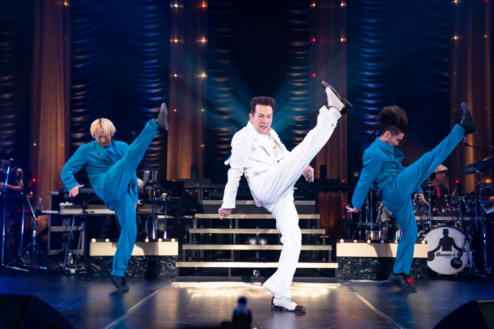 ダンサーのソロコーナーを経て、白いスーツに着替えて登場した田原。「雨が叫んでいる」を切々と物悲しく歌い届けると、代表曲の一つ「抱きしめてTONIGHT」を披露。重力の存在を感じさせない軽やかなムーンウォーク、なめらかなステップ。当時の勢いはそのままに、表現はより深く豊かに変化しており、ベテランエンターテイナーの凄みを感じさせた。曲が終わると、ライトが消えた暗闇の中、微動だにせず最後のポーズをキープ。直後に「Dynamite Survival」を畳み掛け、ジャケットをはだけたり髪を撫でつけたりするアクション、ボクサーのような動きを交えたキレ味鋭いダンスを披露した。