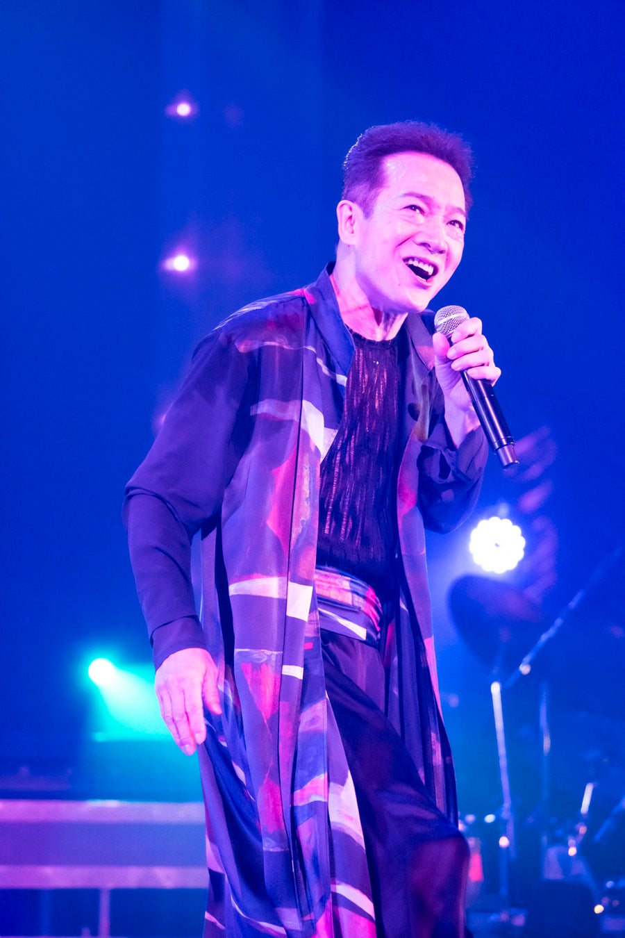 ファンが振るオフィシャルグッズのペンライトは、会場内のみ電飾としてスタッフサイドで色が自在に変化するようにできるシステムを採用。歓声の失われた客席を、鮮やかに彩っていた。MCで田原は「皆、元気ですか?」と呼び掛け、「去年は還暦で皆に盛り上げてもらって。コロナ禍の影響はありながらですけど、マスクして、最後まで気持ち良く突っ走りたいなと思っているので」と挨拶。「マスクをしていても皆かわいいので、迷うな。困っちゃうよ」などとユーモラスに語りながら、「美しい人よ」の曲の世界へとなだらかに移っていく。2人の女性ダンサーと共に、艶めかしいダンスを繰り広げながらグルーヴィーに、ファンキーな歌唱を披露すると、最後のポーズに会場からは大拍手が起きた。再び一人になり、後ろ姿からスタートした「どうする?」は、微かな手の動きや足捌きの美しさで魅了。「シンデレラ」は、サックスソロに乗せた激しいダンスが圧巻。シンセサイザーの特徴的なイントロで「悲しみ2ヤング」が始まると、左右から強い光に照らされて歌唱をスタート。ステージの端から端まで、ターンを繰り返しながら移動していく様はダイナミックで美しく、詞曲ダンス全ての表現が融合した忘れられない場面となった。割れんばかりの大拍手の中、田原はひと時ステージから姿を消した。