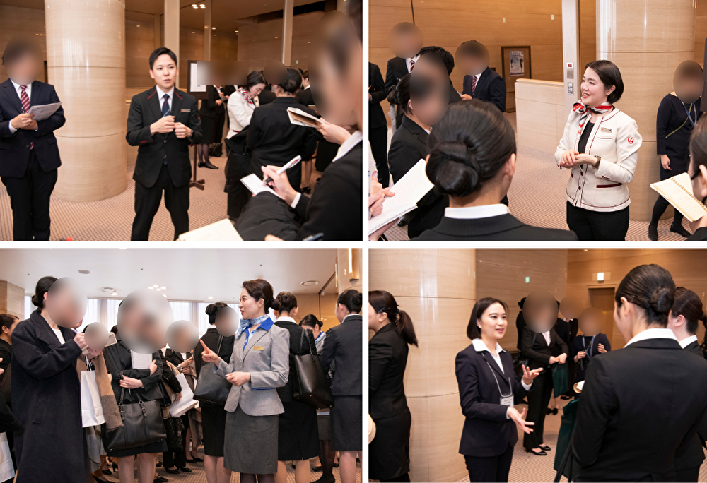 第1部終了後は第2部として、会場参加者は採用担当者や現役客室乗務員、またJALとANAの内定者を囲んで直接質問などをしていただける時間も設けております。