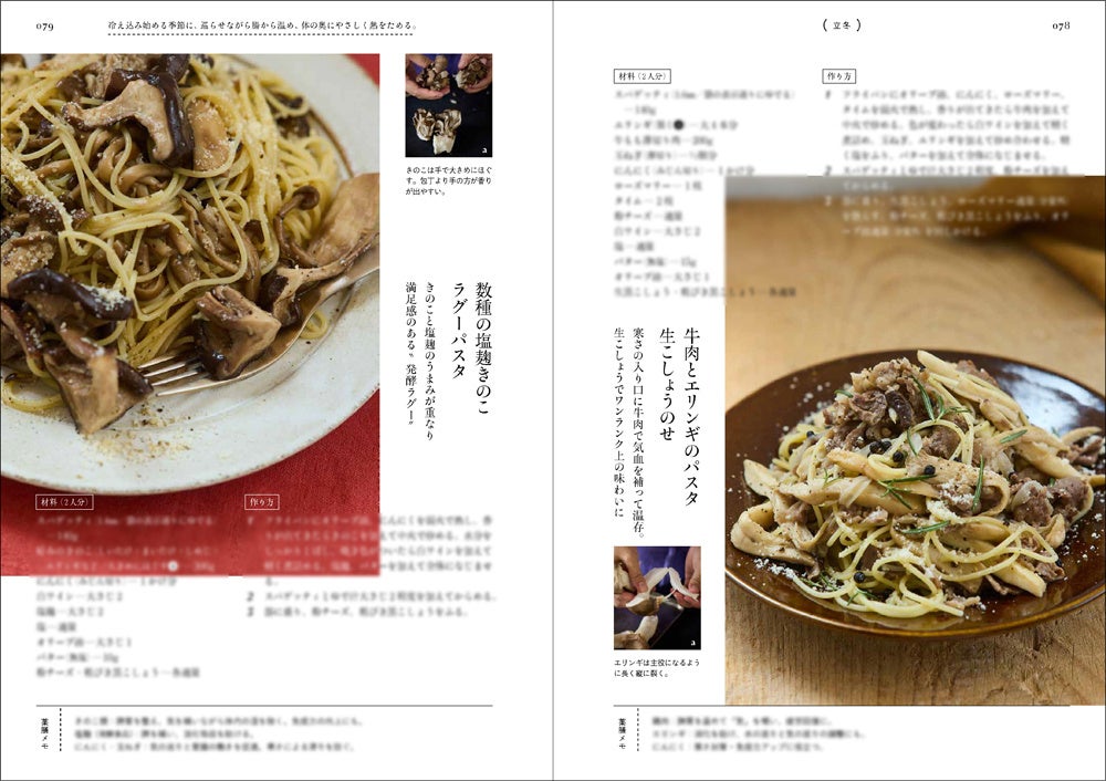 ひと皿で栄養バランスが整うので、子育てや介護、仕事で忙しい方にも実践しやすいのが魅力。シンプルな普段使いのパスタから、特別感を味わえるごちそうパスタまで、季節と心身の変化に寄り添った一冊です。