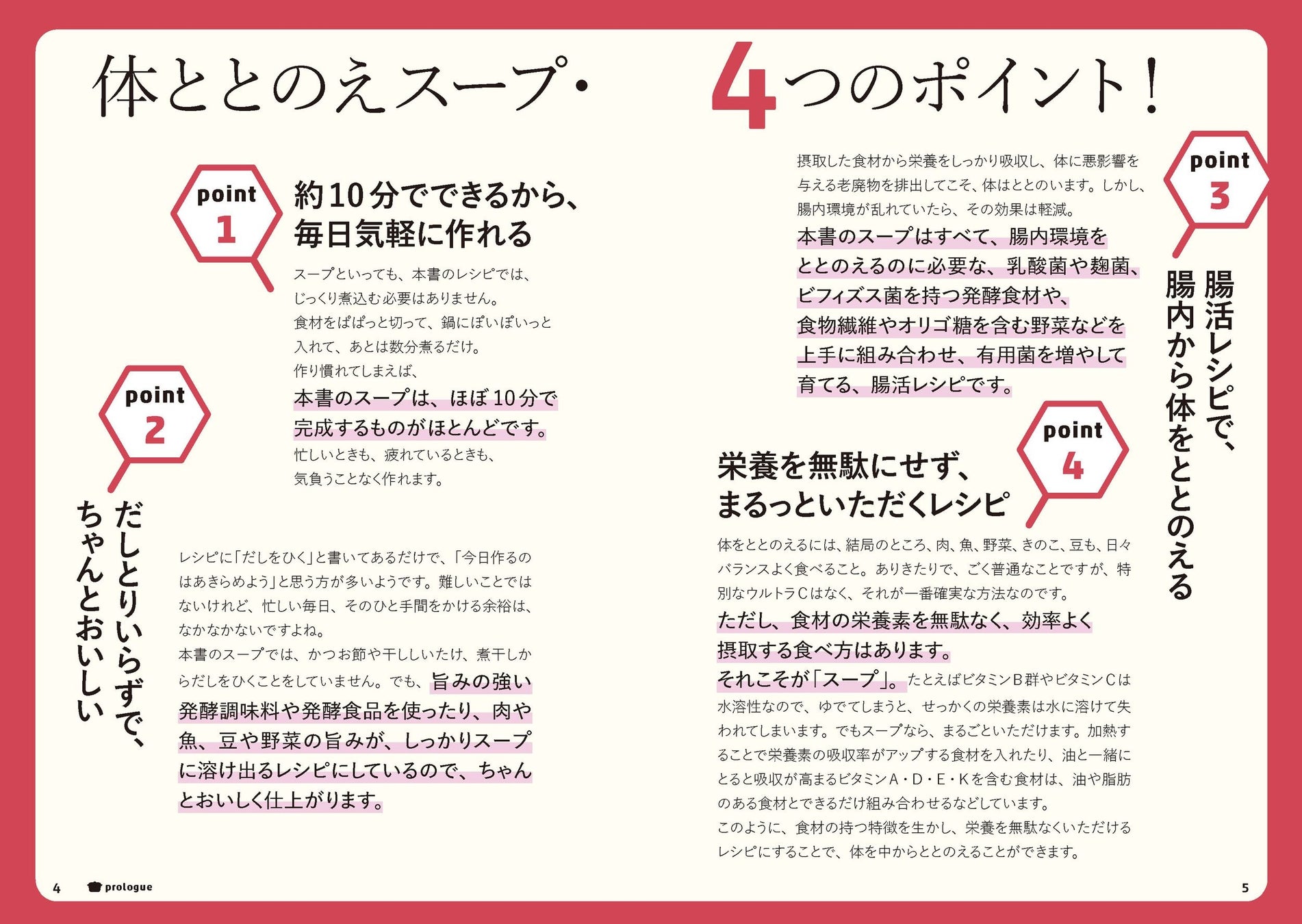 きれいになりたいときや、体の不調を改善したいときはもちろん、疲れがとれないときや落ち込むことがあったときには、ぜひこの本を開いて、あなたに寄り添う一皿のスープを見つけてください。