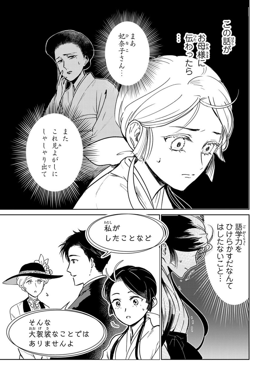 長い異国暮らしから帰国、編入した女学校を卒業した妃奈子は、